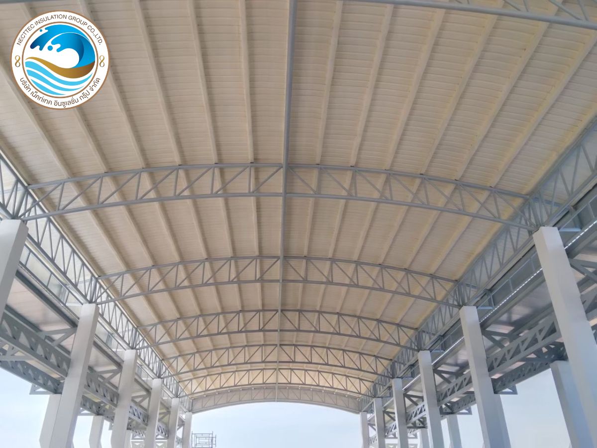 บริการพ่นพียูโฟมบนหลังคาโรงงาน-โกดังด้วยพียูโฟมที่มีส่วนผสมสารทนทานต่อรังสี UV พ่นบนหลังคาและพ่นเคลือบผิวหน้าอะคริลิกเพื่อยืดอายุการใช้งานของหลังคา